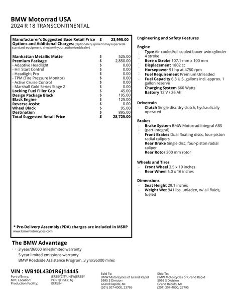 New 2024 BMW R 18 Transcontinental