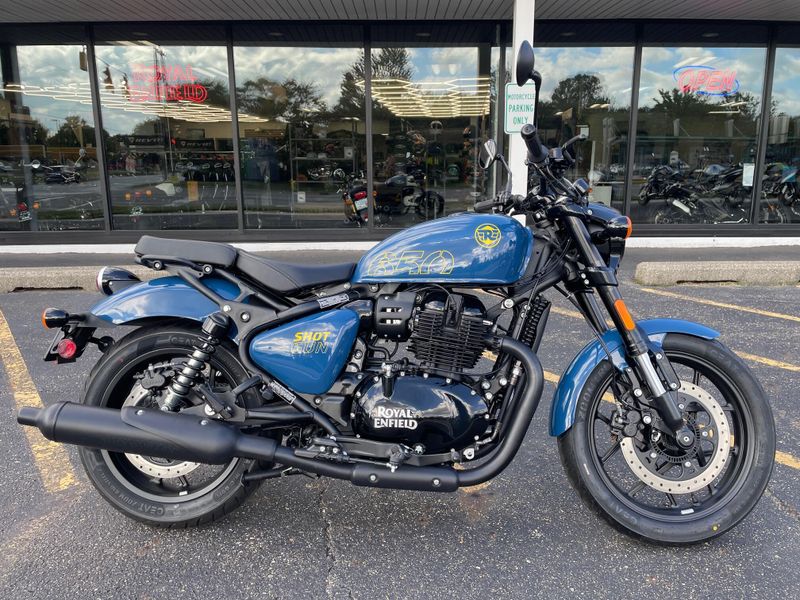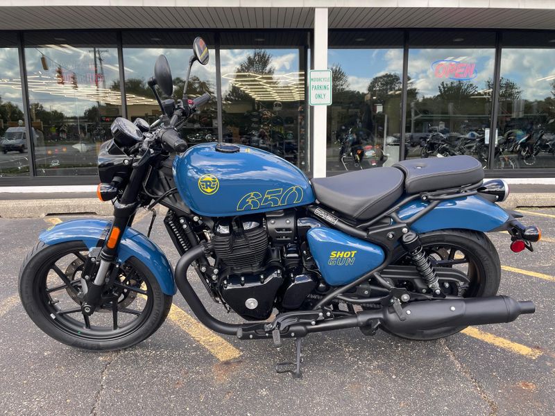 The Royal Enfield Shotgun 650 is a neo-retro cruiser powered by a 648cc parallel-twin engine. With bold styling, low-slung stance, and modern tech like dual-channel ABS, it's built for urban rebels and long-distance riders alike. Rugged, refined, and unique.