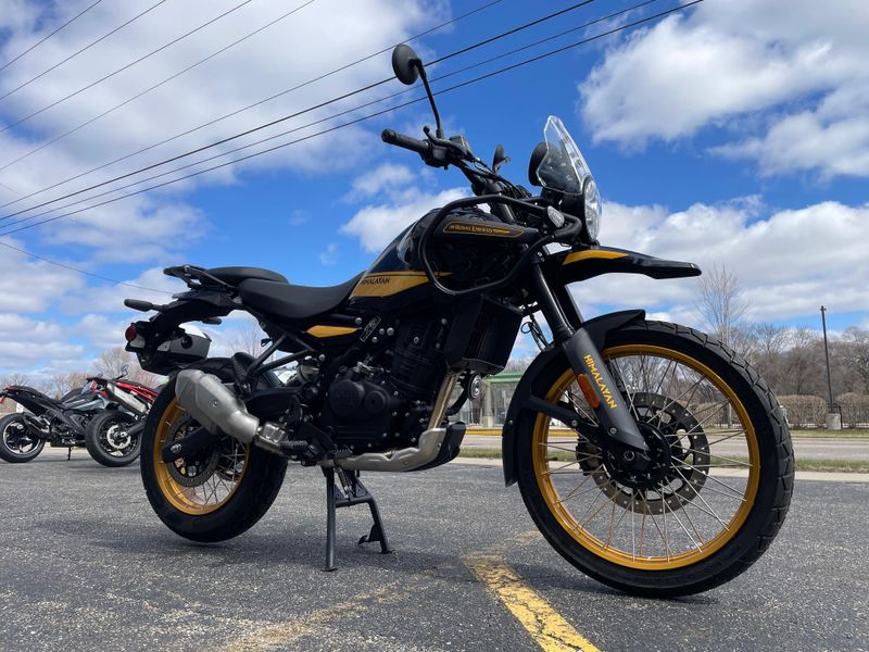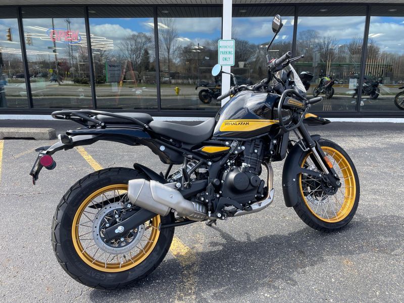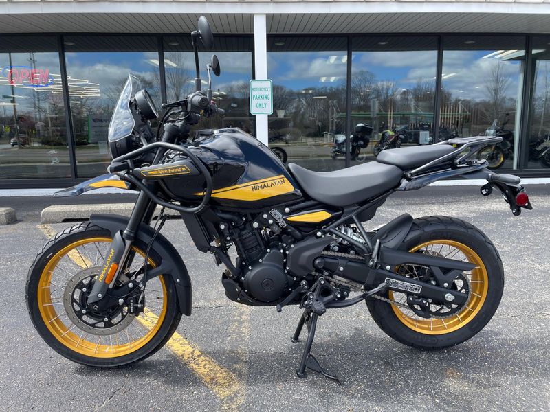 The 2025 Royal Enfield Himalayan 450 is a rugged adventure motorcycle powered by a 452cc liquid-cooled engine producing around 40 hp. Built for versatility, it features long-travel suspension, ride-by-wire modes, and a lightweight chassis, making it ideal for both off-road exploration and comfortable touring.