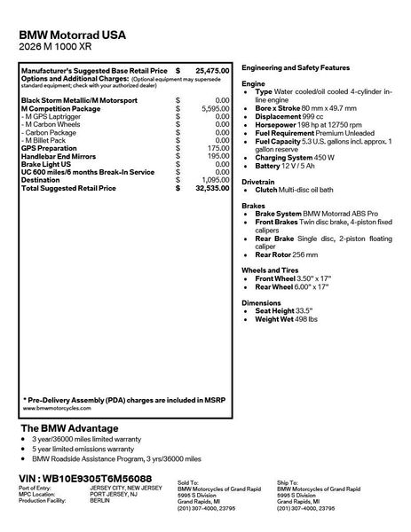 The 2026 BMW M1000XR is a high-performance sport-touring motorcycle that blends superbike power with long-distance versatility. It’s powered by a 999 cc ShiftCam inline-four making about 201 hp, features advanced electronics, premium brakes and aero winglets for stability, and offers comfort and capability for both spirited rides and extended touring.